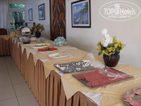 Отель действительно годится только для горящих предложений. Еда очень однообразная - на завтрак дают джемы в коробочках, колбасу, сыр, помидоры, огурцы и вареные яйца. И так каждый день. На ужин вас ждет 1 горячее блюдо из овощей, одно мясное - курица или местные полуфабрикаты, гарнир, ну и салаты. Убивали холодные сосиски со сметаной - мог бы повар их горячими на завтрак лучше давать, или из яиц хоть раз омлет сделать! Из фруктов были только яблоки, один раз - зелёные мандарины и один раз - виноград, а жили в гостинице мы 12 дней. Если что-то заканчиваось, то этот поднос просто убирали, а не подносили дабавку, даже если до окончания время ужина или завтрака еще полтора часа (фотграфии прилагаются).