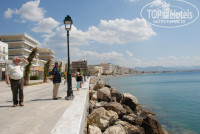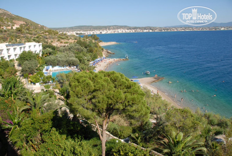 Отель в 15 минутах хотьбы до Лутрак, очень красиво. Приятно прогуляться по аллее вдоль моря, видно все побережье. Ну да, есть 300м по шоссе, что не очень приятно, но терпимо. Территория отеля очень зеленая: кактусы, апельсины, лимоны, бананы среди листвы. Гранаты и виноград, много цветов. Всё полито и подстрижено. Пляж галечный, вода чистейшая, много лежаков(бесплатные). Рыбок не много. На пляже и у бассейна играет легкая музыка (Lounge) Есть одно но: это любимый отель греков (своего рода турбаза), которые приезжают искупаться на выходных. Оооочень их много, но даже в эти дни место у бассейна найти легко. А в будни всё спокойно.
