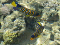 Я не буду писать про прекрасную территорию, великолепный коралловый риф (видел плывущую мурену справа от понтона). Причем наличие разнообразия рыб напрямую связано с погодой. Ветрено - их меньше (прячутся в кораллах), отличная погода - их великолепие. Это я к тому, что были замечание об истощении количества рыб на рифе.