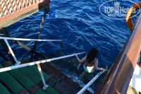 О том, что нету песчаного захода в море и на территории отеля много лестниц указано и на сайте отеля и на странице отеля Top Hotels.