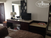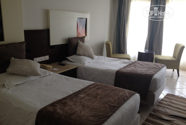 Номер.Стандартный: 2 кровати, телевизор( у нас было 3 русских канала!"аха), мини-бар (маленький грязный холодильник), сан-узел, кондиционер(охлаждение), сейф, французский балкончик (или как их называют?!) ну и тд. Вид был на задний двор, огороженный белыми стенами, за ними дорога, но сторона попалась не шумная. В номере не горели 2 лампочки, но это не особо значимо. Звукоизоляции нет, но спать шум в коридоре мне не мешал.