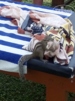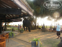 Чудо - это зверье, проживающее в отеле! На бурундучков можно смотреть бесконечно, такие забавные, милые, едят с рук. Одна бурундучиха облюбовала легкое парео нашей знакомой и старательно его перебирала, пыталась собрать в кучку и утащить в гнездо - такая хлопотунья, а сколько терпения у такого маленького зверька! Любопытные цапельки, вараны, прожорливые рыбы во внутреннем водоеме. Один раз видели змейку, она скользнула в заросли под дерево. Охранник сказал, что они безопасные. Приводили слона - тоже экзотика. Слышала, что по пляжу бродят коровы как в Индии. Один раз рано утром видела одинокого бычка на прогулке.