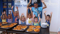 Во время нашего пребывания в отеле был день, когда дети пекли пиццу. Это было незабываемо, сначала всем одели шапочки и перчатки, раздали тесто и различные ингредиенты, сам шеф повар показывал что и как нужно делать. Каждый из ребятишек создал свою пиццу, которую подписали и отправили печься, а дети с аниматорами играли в подвижные игры на свежем воздухе. Когда пицца была готова, каждый получил свой шедевр, который с удовольствием был съеден.