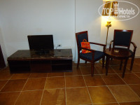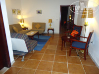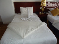 В отеле отдыхали вчетвером, занимали два номера – 155 (с двумя отдельными кроватями) и 363 (одна кровать). При заселении нам предоставили 154 и 155 номера, но в 154 две кровати и мы попросили заменить номер. Все заменили без проблем, также без проблем заменили занавеску в ванной, т.к она не доставала до бортика ванны несколько см. Номер состоит из 2-х комнат, ванной и балкона (на первом этаже терраса, выходящая к бассейну). В номере сразу было 20 бутылок питьевой воды (сразу на весь срок пребывания 10 дней на двоих), 2 бутылки колы, чай, кофе, сахар. Шампуней, гелей и др. принадлежностей для ванной нет. Номер хороший, но ванная требует ремонта, а также полотенца поистрепались совсем(