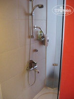 Не понравилось также то, что дверь в туалетную комнату стеклянная, слегка матовая. Душевая кабина также стеклянная, матовая, одна стенка ее выходит в комнату. Если ночью кто – то идет в ванную комнат и зажигает свет, то он попадает через душевую кабину в комнату, как будто и в комнате свет зажигается, не удобно.