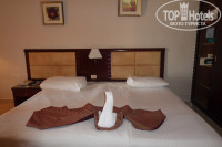 -размещение -прилетели около 9 часов утра по местному времени.Сказали что браслеты выдадут в 12:00,а заселят в номер к 14:00-ну в общем по европейским стандартам.Получив браслеты,не выдержав ожидания,дали 20$ на ресепшине и нас тут же заселили в 4-ый корпус.Номер огромный,две больших кровати + раскладной диван(видимо номер рассчитан на троих).Огромный балкон.Мебель в номере подуставшая и не помешал бы косметический ремонт.В целом по номеру претензий нет.Туалет и ванна чистые,вода горячая была круглосуточно.Номер убирали хорошо.