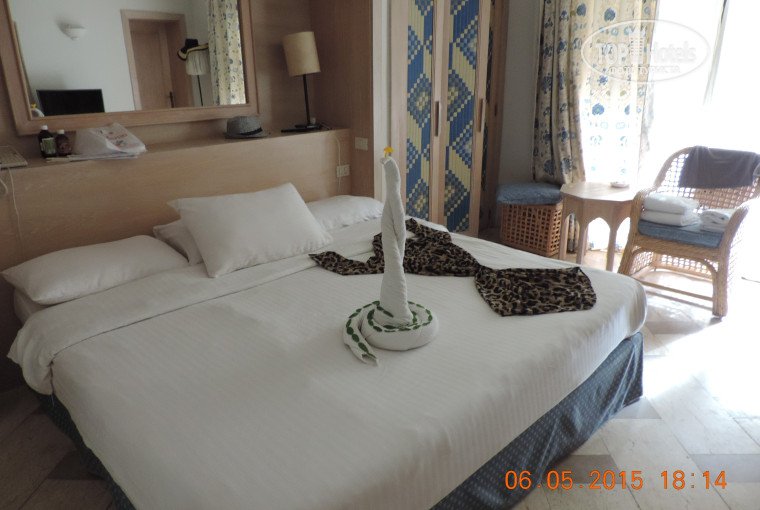 Мы отдыхали 3-9 мая.Заказывали сразу де-люксы и нас разместили к конце территории ,ближе к морю.Бунгало удобные,большие балконы.У нас был один постоянный уборщик,внимательный,не навязчивый.Крутил нам шедевры из полотенец.Полотенца менял ежедневно и в большом кол-ве.Весь отель очень удобный,зеленый,много прохладной тени.Пляж классный- свой отличный риф и все те же рыбки,что и на экскурсиях.Мы пожалели,что набрали экскурсии-лучше у себя спокойно плавали.Питание отличное,все есть.Мы ходили в Риф,там очень комфортно.Классное кафе с блинами и морожен.Про анимацию не могу рассказать,видели ребят в форменных футболках.Вечером предлагают платные шоу.В центральном лобби вечером "дым коромыслом".Иностранцы хорошо напиваются и вплоть до танцев.Шум!!Русских в отеле много-9 мая наши многие и я надели ленточки победы.Экскурсии покупали и у туроператора(акваланги) и на улице(на лево).Расположение отличное,все очень рядом.В,общем,советую!