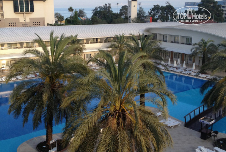 Территория не очень большая. Но у меня уже есть опыт отдыха на огроменной территории, где на водные горки детям удалось попасть один раз, т. к. надо было идти по ступенькам по жаре очень далеко. Поэтому для меня небольшая территория этого отеля была плюсом. Все компактно. Все рядом и в быстром доступе. На территории чисто, постоянно убирают, метут, собирают мусор около лежаков. Дочка сама ходила в миниклуб, на минидиско - заблудиться там нереально. Если охота прогуляться - выходим из отеля и налево. Полно всяких магазинчиков, маленьких кафе, сувениры, кожи, сладости! В общем все по-турецки. По пятницам приезжает базар. Цены втрое ниже, чем около отеля. Прогулка до пляжа занимает 3-5 минут. Совершенно не напрягает. Пляж небольшой, но нам хватало всего - и шезлонгов и еды. Может быть потому что отдыхали в начале сезона и отель не был заселен на 100%. На минус 1 этаже хамам, сауна, крытый бассейн, спортзал. Ходили часто, почти каждый день.