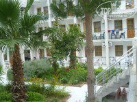 Нас заселили в номер с прогнившей дверью в ванную комнату,с плесенью на этой двери и на кафеле на стенах ,с паутиной под столами,на окнах,с редкими тараканами и др.живностью на минус 1 этаже(есть такой в отеле) с видом на заграждения площадки перед бассейном.Горячей воды не было 10 дней из 11,номер убрали 1 раз за 11 дней только после звонка отельному гиду от "Pegas". На двоих проживающих выдают только 2 больших полотенца.Вместо одеяла или второй простыни на кроватях засаленные нестиранные месяцами покрывала горчичного цвета.3 дня включали в обед и вечером нудную музыку,на наши просьбы включить что-то повеселее для позитивного отдыха не реагировали.На рецепшен работает недоброжелательный грубый рецепционаст,который не понимает,что мы приехали отдыхать ,а не смотреть на проблемы отеля и ими заниматься,он дает номера получше только за деньги и еще подумает,как поиздеваться над вами за эти деньги-один турист нам рассказал,что получил за 20 баксов номер получше,но потом переезжал из него по каким-то выдуманным рецепцеонистом причинам в другой номер,в общей сложности 3 раза переезжал.Впечатление,что цели этого рецепциониста - как можно больше поиздеваться над россиянами или обанкротить хозяина отеля,сделать всё,чтобы туристы не ездили в Турцию с такими отелями .Мы общались со многими туристами из этого отеля и узнали,что во многих номерах недоделки- у кого-то не работает кондиционер,у кого-то нет телевизора,у кого-то плохо вытекает вода из ванной комнаты(вода из душа заливает всю ванную комнату,т.к. душевых кабин нет),у кого-то в номере ужасный запах или влажность - в одном корпусе прачечная ,влажность очень большая в номерах из-за нее и белье сушат на улице тут же при выходе из номеров.Кроме того,воду в кулер добавляют прямо из водопровода - мы сами ночью видели ,как это делали сотрудники отеля.Напитки в баре некачественные,бесплатного пива нет.Короче,если вам дорого ваше здоровье и вы хотите отдохнуть без созерцания проблем турецкого отеля и разговоров с наглыми рецепционистами,то забудьте о существовании этого отеля и его дешевизне!Лучше не клевать на дешевую цену на тур в этот отель,а найти способы купить тур в отель подороже! В Кемере много прекрасных трешек -хороших отелей по доступной цене.Мы поверили последним хорошим отзывам об отеле и 100 раз пожалели об этом.Хорошо только,что сам Кемер - прекрасный городок с чудесными людьми,великолепным морем,замечательными экскурсиями,где всегда можно прекрасно отдохнуть,если забыть о Ares hotel!!!