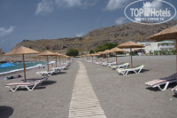 Питание - шведский стол (завтрак, обед, ужин), еда не шикарная, но вкусная. Иногда не хватало чаю за ужином и обедом, вино и пиво были всегда. Особой популярностью пользовались арбузы. Понравилось, что есть столики на открытой веранде, приятно за завтраком любоваться горами. Территория отеля хорошая, ухоженная, есть где прогуляться. Море в 5 минутах от отеля, пляж песчано-галечный, довольно чистый. Сам пляж бесплатный, но лежаки платные. Возле пляжа есть магазинчик с разными мелочами. Вход в море не очень удобный из-за гальки.