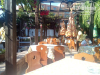 Хотелось бы отметить минусы: РАСПОЛОЖЕНИЕ - в дождь добраться до ресторана то еще приключение. Опять же после или во время дождя весь внутренний дворик ресторана оказывается не пригоден для приема пищи. а мест под навесами и в закрытых помещения на всех точно не хватит. Еще одна беда - мошки, такие маленькие и противные, которые так и норовят сесть вам на стакан или в тарелку. А бывало, что и яркую одежду или голову. ОРГАНИЗАЦИЯ - не знаю кто планировал размещение шведского стола, но я бы ему оторвал руки: столик с тарелками и столовыми приборами расположен слева от входной двери, как раз пересекаясь с людским потоком, с полными тарелками. В итоге люди всячески пытаются уклонится от столкновения, Почему было не разделить входные и выходные потоки людей - не понятно!!! В ресторане есть детские стульчики, около 5 штук.