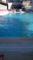 Ресторан на 2 этаже отдельно стоящего здания. Над баром. На улице тоже есть места. Еда целиком и полностью европейская, ничего острого и пряного. Картошка, курица, рыба, рис, макароны с томатной пастой, пару видов салатов овощных, огурцы/помидоры. Из фруктов арбуз или дыня. Это обед и ужин, не особо разнообразно, но очень вкусно. На завтрак два вида хлопьев, огурцы, помидоры, омлет, рагу из овощей, масло, джем и шоколадная паста, вкусный хлеб, чай/кофе весь день. Напитки из бара. Из сладкого, некое турецкое пирожное. Бассейн большой и вроде чистый, горку включали каждый день. Лежаков было достаточно. Зонтики. Wi-Fi не было, но на ресепшене нас дали пароль. В номере иногда ловил, но редко. На улице хорошо.
