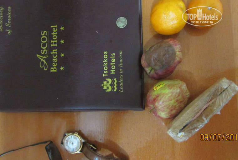Чтобы уберечь взыскательных соотечественников от ошибок при выборе страны (Кипра) и этого отеля в частности, решил потратить время и написать о своих негативных впечатлениях и от того и от другого. Прибыл я в отель 29 июня на 10 ночей с питанием «полупансион». В целях экономии времени опущу общие описания и поделюсь только негативом… Неплохой сам по себе номер, лоджией выходил на торцевую часть здания отеля. Вид вполне себе ничего, и горы и частичка моря. Однако, выйти на балкон, а уж тем более находится на нём было крайне неприятно по причине ужасного запаха, доносившегося от канализационной ёмкости находящейся в земле, примерно в 100 метрах от отеля. Каждый день, начиная с 7 часов утра, подъезжают огромные автоцистерны и очень громко откачивают фекалии. Не люблю рано вставать, но от этого утреннего шума не спасали даже плотно закрытые двери лоджии. Отель имеет 4* и я был крайне удивлён, что Wi-Fi на сутки стоит 10 euro, на 10 суток 30 euro. В 15 минутах ходьбы есть приличный торговый центр Филиппос, где можно купить и продукты и магнитики, а главное на его территории имеется Бесплатный Wi-Fi!)) Своего пляжа у отеля нет… Море рядом, реально первая береговая линия, но подойти к морю сложно, берег не обустроенный, крутой, проще сказать отвратительный. Бассейн неплохой, есть где поплавать, но в воде часто плавают пластиковые стаканчики и прочие атрибуты приёма пищи. Обслуга на эту тему не парится. Ближайший более менее нормальный, но слегка «перегруженный» пляж находится в 10 минутах езды на общественном транспорте (автобусе №615). Стоимость проезда днём 1,5 euro в одну сторону. Питание в отеле неоднозначное, бывали дни, когда я оставался доволен, а иногда уходил в отвратительном настроении. Ну и конечно довольно смешной для жаркой страны «дресс-код» для мужчин при посещении ужинов. Надеясь на здравый смысл пришёл первый раз в шортах практически до колена… Пришлось вернуться и одеть брюки. Женщины кстати сказать, ходят в совершеннейшем бесстыдстве)))…им не возбраняется, видимо чтобы отвлечь мужскую часть непосредственно от приёма пищи в целях экономии). Неприятно было и увидеть гнилое яблоко, подсунутое отельерами в мой скудный "сухой паёк" при раннем выезде из отеля в аэропорт. Фото публикую).