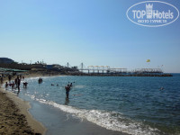Ездили вдвоём с женой на неделю. От аэропорта добрались достаточно быстро (часа за полтора), заехали в отель с рассветом, около 6-ти. На рецепшене сообщили, что наш номер будет готов после 12-ти, поэтому мы, сдав багаж в камеру хранения (комнатка всегда открыта, но ни кем не контролируется), поспешили занять лежаки у бассейна. Вода оказалась достаточно хлорированной, чтобы сразу после завтрака мы поспешили к морю. Вот там то, что надо – не очень солёная, с маленькими волнами, достаточно прохладная. В первый день мы основательно подгорели, хотя из-под тентов на пляже практически не высовывались и даже мазались защитным кремом – будьте очень внимательны с солнцем в день приезда! Разместили нас, во сколько и обещали. В номере всё работает – душ, кондей, фен. Есть двуспальная кровать и однушка рядом, тумбочки, телик, который мы так ни разу и не включили, шкаф с запасным верблюжьим одеялом, которое к нашей коже не подошло, да и особой надобности не было. Кондей можно оставлять на ночь, зафиксировав на +23, а в обычное время – на +18. Территория отеля небольшая и примерно вписывается в квадрат 250х250 метров, включая расположенное галочкой само здание с номерами и внутренний дворик с бассейном, двумя горками для детишек и столиками, где можно присесть, выпить, поболтать. Влажную уборку в номерах делали ежедневно, полотенца по первой же нашей просьбе поменяли, а реакцией на чаевые стал лебедь на кровати из нашего же пледа))) Пляж достаточно чистый, его убирают в течение дня, собирая стаканчики, окурки и прочую мелочь из вазонов-урн, распределённых по пляжу. Лежаки и матрацы бесплатные, пустое место найдёшь всегда. В 10 утра на пляж приходят аниматоры пожелать доброго утра, чуть позже происходит утренняя гимнастика у бассейна, в 11 и 16 пляжный волейбол, аквааэробика где-то между ними, дартс у бассейна около 17 и вечерняя программа для детишек. Насчёт взрослой анимации слышали, что есть возможность вместе с аниматорами съездить на местную дискотеку с 23 до 3 за 10$, но разведывать дальше не стали – хотелось просто отдохнуть, поплавать, отоспаться – всего неделя, ведь. Особенно хочется отметить питание – оно очень разнообразно и в целом почти всё вкусное. С утра яичница, омлет, жареные сосиски или помидоры под сыром, всякие хлопья, варенья, шоколад, растворимые соки, каша (одна, но есть всегда), овощи, арбузы и т.д. В обед два крем-супа на выбор (можно добавить тёртый сыр и гренки), мясо, кура, индейка (особенно мне нравились разнообразные маленькие котлетки), арбузы, черешня, персики (жутко неспелые), десерты (достаточно однообразные, но практически все вкусные). На ужин примерно то же самое, только добавлялась дыня (сочная, но не всегда достаточно сладкая). На пляже с 11 часов делали лепёшки, гамбургеры, картошку фри, есть пепси, соки, пиво, кофейный аппарат, вода, газировка всякая. В 16:30 у бассейна делают пышки – поднос разлетается максимум за 15 секунд (без шуток, иногда за 10), поэтому лучше не зевать. Есть и всякие печенюшки, рулеты, но на них никто не зарится))) Главный минус здесь – полное отсутствие коктейлей и нормального крепкого алкоголя – была только водка, джин и местная ракия. Так что советую запастись этим в Дютике, даже если вы и не особый любитель. Вполне вероятно, что захочется, ведь пиво здесь эффекта особого не имеет, а вино сухое и своеобразное. Гид от Пегаса очень 