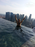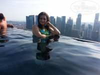 Остановились в этом отеле на одну ночь. Отель просто прекрасен! Нам дали номер на 53 этаже. Номер замечательный. Невозможно было придраться ни к чему! Мебель новая, сантехника в идеальном состоянии, но главное – это вид из окна! Нет слов чтобы описать всю гамму чувств, которую мы испытали, когда вышли на балкон своего номера. Ради этого вида стоит остановиться в этом отеле хотя бы на одну ночь. Главное, чтобы номер дали повыше. И тут есть один секрет. Нас об этом предупредили друзья до поездки. Нужно быть в хорошем расположении духа и улыбаться сотрудникам на ресепшене. Хотя мне трудно себе представить, что заселяясь в Марину Бэй можно быть в плохом настроении. Нам дали номер классом выше, чем мы бронировали. Почти на самом верху. Знаменитый бассейн находится на 57 этаже.
