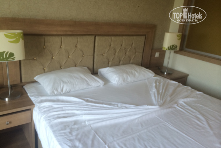 Добрый день ! Вот и добрались мои руки до отзыва !!! Начну с того , что прилетели в 10.00 , на ресеп., сказали засеяли не раньше 15.00 , дали 20 долларов , заселили в 12.30 , как и всех остальных !!! Ну может это наш косяк , сами виноваты . Но после этого , начался настоящий ужас . Заходим в номер , а там !!!!! Одна комнатушка , раз деленная туалетом , т.е. У нас номер фемели рум , короче вторая комната , которая для детей - Без окна !!!!!!! Как только окрываешь дверь из общего каридора, сразу же упирается коленями в кровать. Так как это помещение изначально было пригьтовлено просто под прихожую.. спишь около двери без окон душно очень и каждый шорох за дверью слышно.Мы бегом на ресеп. типа где наши обещанные апартаменты , нам говорят - чтоб с окном , еще каждый день доплачивайте по 15 дол . Мы обалдели . В комнате : грязный ковролин , весь в пятнах и тд, один ящик сломан и весь в пыли , на стенах такая грязь застарелая , пипец. Фотки все кину. Про персонал - убирают каждый день - пылесосят и из проста ни делают бантик , ха ха , только постельное не меняют , во второй день засекли , что дети после обеда спят, приходили именно в это время , иногда отказывались , тк они ни хрена не понимают , что надо позже прийти. Полотенца не меняли , а просто наши складывали , которые сухие . Под раковиной с первого дня была грязь , каждый раз тыкала носом , не убрали , пыль тоже показывали , ноль эмоций !!! Дальше столовка - еда отвратительная , соевые котлеты , всегда курица и невкусная рыба , дети ели одни макароны . Но еды действительно много ! Фрукты хорошие , овощи , супы - баланда острая. Дальше отношение , реально по браслетам смотрят , кому налить , мне тоже пару раз из 2 бутылок сливали вино , как то не приятно . Еще минус - автобус ходит до 19.30 на пляж, мы как то задержались , там турчанки с детьми купались . А еще , чтобы ждать наш автобус до аэропорта в комнате нам пришлось заплатить 30 евро за 3 часа ,рубли не меняют , ездила на такси в другой город , мен не официальный , курс завышен намного , еще и морда недовольная. А , вспомнила , первую ночь в одной комнате 5 раз сам включался телевизор , жесть вообще, но потом исправили . Анимации классная , нам нравилось . С детьми играют . Каждый вечер интересное шоу !