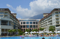 Летели с Киева 18.07.2015,в отеле были где-то в 8.30. Персонал встретил приветливо, хотя наш номер был еще не готов, но мы смогли скоротать время за завтраком и прогулкой по территории отеля. И уже к 11.00 мы были в собственном номере. Ехала с мамой и ребенком (10 лет). В номере было удобных кровати и небольшая раскладная кровать. Чистое постельное белье, полотенца, халат и тапочки, вся необходимая косметика в ванной,везде было чисто, в холодильнике - напитки. Наши окна выходила на другой отель, хоть он был и туссовочный, но звуков по ночам мы никаких не слышали, так изоляция была хорошей. Условиями были довольны. По питанию тоже никаких вопросов: рыбные, куриные и другие блюда из мяса в качественном исполнении, холодные закуски, овощи и фрукты всегда были свежие, десерты очень вкусные. Короче шефу лично привет, он умница! Также порадовал тортик на гала-вечере, которым угощали всех отдыхающих. Бары в отеле и их персонал получают от меня тоже "5". Всегда приветливые, ассортимент напитков, как алкогольных, так и без - более чем))Вежливые официанты, без вот этого турецкого, как во многих других отелях, "А давайте познакомимся!"Видно, тренируют ребят, как нужно. Развлечения и шоу-тайм-тоже в порядке. Порадовали коллективы из Кубы. Было классно разучить несколько танцевальных па посреди белого дня, а потом вечером наслаждаться настоящей кубинской экзотикой+ акробаты, гимнасты и другие профессионалы по части шоу не давали скучать. Вечером ди-джеи задавали ритм, я со своей малой не один вечер оттанцевала у них на диско. По поводу программы после полуночи... У них там есть ночной клуб, но хотелось чего-то по-круче. Ребята из анимации возят на популярные ночные клубы в центре Кемера. за 10 баксов вы получаете трансфер из отеля и обратно, вход в клуб, зарезервированные столик комплимент от заведения в виде фруктов и других закусок (алкоголь за ваш счет). Весело было всегда: из семи ночей была на трех дискотеках такого типа, помимо звезд типа Тимати, классную атмосферу задавали ди-джеи. Все было организовано. В бассейнах не люблю сидеть, но видела, что были они всегда в порядке, несколько небольших горок для деток, вода в них регулярно чистилась. Итак, пляж. Тут вообще класс! Природа вокруг очень красивая, галечный пляж, вода прозрачная, висел флажок, обозначающий, что данный пляж один из самых чистых на побережье.Проблема была только в самих отдыхающих, которые умудрялись занять лежак в 6 утра и прийти только в 6 вечера при этом просидеть весь день на баре, например. Мой совет, как и персонала, срывать полотенца и наслаждаться отдыхом!Короче, отдыхом я осталась довольна, как и моя семья. Будет возможность, приеду снова!Всему персоналу отеля-зачет!