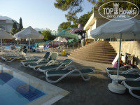 Отдыхали в отеле с сестрой и племянником 4 года с 11 по 18 июля 2015 г. Территория отеля небольшая, но ухоженная и уютная. Для счастливых дней больше и не нужно было. Прекрасный вид на горы и море! Сервис на высоком уровне. Скучать не приходилось. И ребенку 33 удовольствия. Наш больше конечно в бассейне любил плескаться (есть детский бассейн в тени деревьей, глубина 35 см). Для детей предусмотрен мини-клуб, куда можно отдать ребенка с 10 утра до 12.30 и с 14.30 до 17.00, если ничего не путаю. Там с детьми занимаются, придумывают им развлечения. Но наш согласился от нас отлучиться только раз в мини-клуб на 1,5 часа на поиски сокровищ. И конечно же детская дискотека! Прекрасная музыка, легкие движения для детей, всегда аншлаг! Спасибо Гюзель и (простите) забыла имя прекрасного актера! Искренние, добрые ребята, любящие детей, которые к ним так и липли!