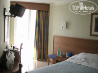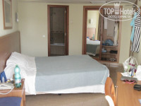 Номера в отеле достаточно большие, все очень типовое и без изысков, но мебель не потрепанная, сантехника работает. Убираются и меняют полотенца каждый день, постельное белье через день. У меня был угловой номер, по размеру он такой же, как стандартный, только одна стена немного скошена. Большой плюс в том, что номер был расположен в конце коридора, и поэтому мимо двери не бегали толпы туристов и обслуживающего персонала.