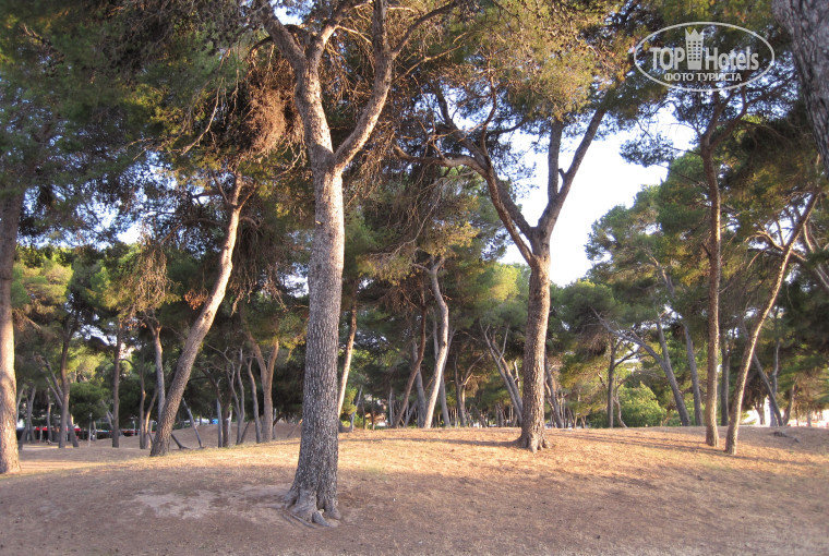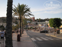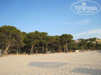 Можно сказать, что отель находится на первой линии, хотя ее там нет как таковой, т.к. вдоль берега проходит автомобильная дорога. Пляж очень широкий, поэтому дорогу даже не замечаешь, тем более, что вдоль нее растут сосны и пальмы, в которых живут горные голуби и даже зеленые попугайчики.