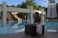 Территория в зоне бунгало большая, ухоженная, чистая. Очень хороший большой бассейн с душем и туалетом. У бассейна много лежаков. Вечером, после половины пятого загорали у этого бассейна, у моря было уже прохладно и ветрено. Есть свой бар, но работает только днем с 12 до 16. В баре только закуски, салаты, фрукты, спиртное, чай, кофе и напитки. Если лень в обед идти в главный корпус, можно пообедать и там.