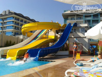 Лежаки и зонты новые – еще один бонус, места на пляже хватало всем желающим. Очень понравились горки, накатались, так накатались :)