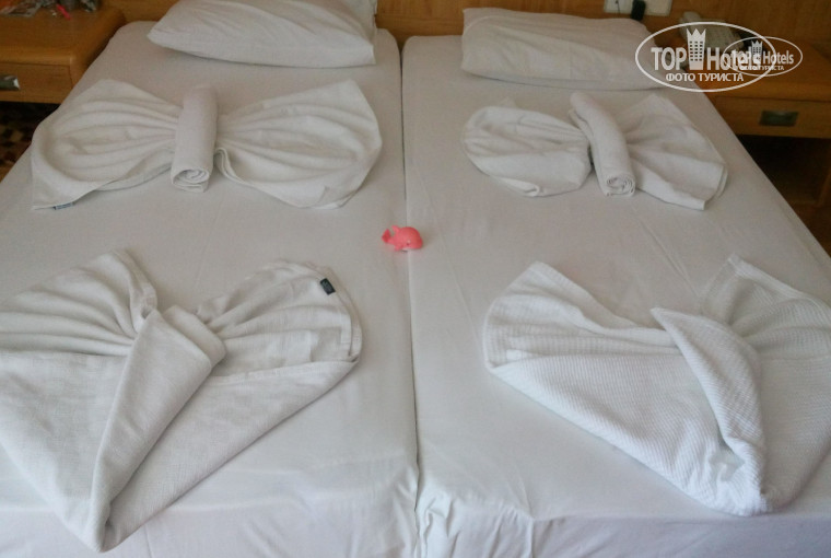 Номер чистый, вся мебель и техника исправны. Убирались каждый день, делали лебедей,слоников и бабочек, полотенце и постельное белье меняли раза 3 или 4 (отдыхали 10 дней). Окна во двор , была слышна анимация, но нам не мешала уснуть.