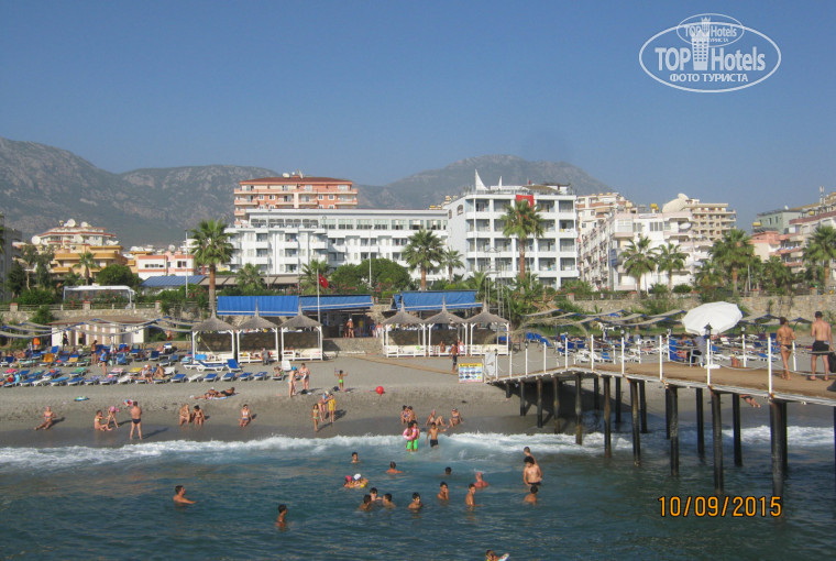 Отдыхали парой с 10 по 20 сентября 2015 года. В Аланье первый раз, да этого побывали в Кемере.Заселили сразу после обеда в номер с красивым видом на море на 6 этаже.Убирались хорошо, делали из полотенец лебедей. Большое спасибо менеджеру по работе с гостями Анастасии. В номере двуспальная кровать, кресло, телевизор, кондиционер. Море хорошее, бирюзовое, были волны, заход сложный, но можно зайти ближе к пирсу там лучше. На пляже бар ,пекут в печи традиционные хлебцы с начинкой.Посещали один раз (бесплатно) ресторан аля-карт понравилось.Главный ресторан на 7 этаже конечно вечером это прикольно уже не так жарко и вид хороший но днем жарковато.Вообще, есть в отеле конечно же минусы и нюансы, но мы туда приехали отдыхать, что ни об одном из них не хочется упоминать.Что хочу пожелать развиваться стремиться к лучшему.