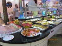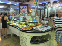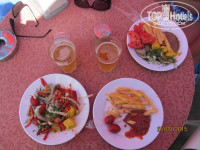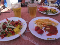 Питание. Отличное, очень разнообразное и вкусное. На завтрак жарят тебе на выбор омлет или глазунью, при тебе пекут блинчики-оладушки. Много разных мюслей, джемов, мед прямо в сотах, йогурты двух видов. Овощи, зелень, разные сыры, оливки, маслины. Колбаса и сосиски соевые, намного вкуснее ветчина (она светлого цвета). Полно разной выпечки, булочек, гренок, полно разных чаёв, кофе тоже разный из кофе-машины. Кстати, любителям кофе: он намного вкуснее в баре, том что в холле…Обед и ужин – супер обильный. Мы любим мяско, и тут оторвались по полной: баранина, говядина, телятина, курица и индюшатина в разных видах. При тебе каждый день на ужин жарят рыбу: дорадо, белую форельку, раз давали тунца. Очень много овощей, зелени разной, соусов, салатов. Мы ни разу не брали гарниры, типа пюре или спагетти, только мясо и овощи в свежем и тушёном виде. Из фруктов: виноград, дыня, персики, арбузы, сливы, яблоки, груши. Мы не любим сладкое, но народ хвалил… Короче, голодными точно не будете! Конечно к концу вся это слегка поднадоело, но сейчас уже вспоминаем с ностальгией наши ужины в Дрите.)