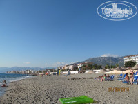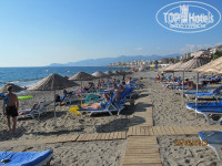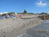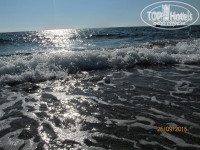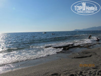 Море. Чистейшее! Даже на глубине видно дно. Единственный минус – крупные камни при заходе. Зная об этом из отзывов были к этому готовы. Первые четыре дня, как мы приехали, был полный штиль и эти камни особо не напрягали. Справа у крайних лежаков есть дорожка, можно было зайти и плыть без проблем. Потом начались дождь и гроза (впервые за сезон, как нам сказали), море заштормило, и заход с берега стал просто опасен. При нас одного пожилого немца сбило волной, он рухнул затылком об камни так, что потом два дня ходил с повязкой, но вроде всё обошлось. Тут у нас было два варианта: или плавать с пирса или сидеть на мелководье по пояс в воде, заваливаясь на спину от больших волн. Правда, тогда купальник полон мелких камней, но это не критично. Испробовали оба варианта, и оба понравились…) Лежаков свободных полно, около каждой пары ведерко для окурков и мусора, так, что на пляже чистенько. На пляже с 10 утра работает бар, можно выпить пиво и разные безалко напитки, а с 12 и перекусить. Вообщем, и тут претензий ноль!