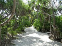 Остров - изумительный! Сначала мы огорчились, что попадем не на классический крохотный мальдивский островок (ехали по фортуне), а потом поняли, что прожить 12 дней на "большом" острове с тремя отелями - куда интереснее! Буйная зелень и спокойствие (если вы не попадете в бунгало рядом с техническими объектами), вокруг общественных сооружений и баров все так грамотно порассажено, что даже я, человек с отменной пространственной ориентацией на этом квадратном километре часто путался. Но вообще, служебных и техпомещений практически не видно. И ты на лоне природы!