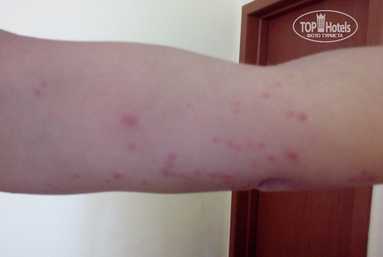 Отель для этимологов: мухи, комары, клопы! Впервые за свою долгую жизнь познакомилась с клопами. Думала, они остались в далеком прошлом. Ан нет! Самое противное, что горничная обнаружила их раньше нас, но нас не переселили, просто протравили номер. Мы подумали, что мух или комаров травят, проветрили, легли спать, а ночью мы с воплями ужаса побежали на рецепцию с требованием переселить нас в другой номер. Переселили, но мы уже были искусаны, особенно досталось подруге (см.фото). Для смелых: из плюсов отеля отметила бы довольно приличное питание, хорошее море. Но почаще осматривайте свою постель.