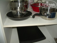 На кухне была жидкость для мытья посуды, пара старых губок, поставили нам моющее с-во для сан техники (я так поняла) упаковку салфеток для рук. Соль очевидно от кого-то осталась. Для посудомоечной машины ср-в не было.Для чистки обуви и одежды также ни чего нет. Набор ниток если кому надо-тоже с собой!