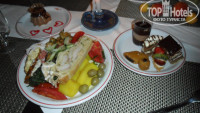 На завтрак -было все (овощи,сыры,яйца вареные,пончики,блины,омлеты,фрукты,каша,всякие хлопья ,йогурты….и т.д. очень много всего.