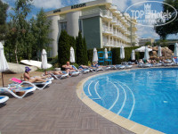 Добрый день ! Вот недавно вернулась из Болгарии, отдыхала в отеле Das club Sunny beach. Заселение прошло быстро, мы приехали в отель вечером, успели к ужину, всех , кто прилетел в самолете из Казани,человек 6, заселили в корпус Цвете, а ресепшен корпуса Флора всех встречает и провожает до корпуса. Территория отеля огроменная и красивая, у каждого корпуса бассейны и свои рестораны. Самый близкий корпус к морю - это Цвете , три минуты до моря, от Родопи тоже ближе, а дальний Флора. Мест, лежаков, я имею в виду, у бассейнов достаточно много, не надо бежать и занимать,можно загорать везде,где захотите. Номер мой был очень большой, одноместный, но с одной большой кроватью. Питание в отеле отличное, завтраки, как и везде включают сыры,ветчину разных видов,омлет глазунью, яйца ,блинчики,булочки слоенные, оливки ,йогурты разные,овощи, фрукты, каши ,кофе,чай напитки всякие. На обед обычно была свинина,курица, рыба, говядина, всякие колбаски гриль, ну и салаты, макароны,картошка очень вкусная, всякие запеканки, нарезки и куча фруктов - черешня, абрикосы , арбуз , дыня, апельсины, яблоки , грейпфрукты , сладости и торты , вообщем все очень хорошего качества... Ну и спиртное, само собой разумеется - вино и пиво. Персонал в ресторане очень вежливый . Постель и белье в номере очень чистые , отель очень большой,горничные могут и не добраться до вас, лучше сушите полотенца, не кидайте сразу их на пол...Но если они пришли, то меняют, я по этому поводу не зацикливаюсь никогда и даже просила,чтобы не убирались. Каждый вечер анимация и в течение дня тоже проводятся всякие игры и аэробика. Ездила в старую часть города Несебер, проезд стоит 1.30 лево, автобус номер один, ехать нужно до конечной остановки, рекомендую, красивый город , с кучей памятников ( церквей ) и магазинчиков . На берегу моря проходит променад, там тоже куча магазинчиков и ресторанчиков, чем-то напоминает Мармарис. Мне все очень понравилось , отель , я считаю , просто шикарный , тянет на пять звезд , вернусь еще раз именно в этот отель. Будут вопросы , пишите . Очень понравился ресепшен Цвете, ну очень отзывчивый персонал и дружелюбный, это касается и ресторана.
