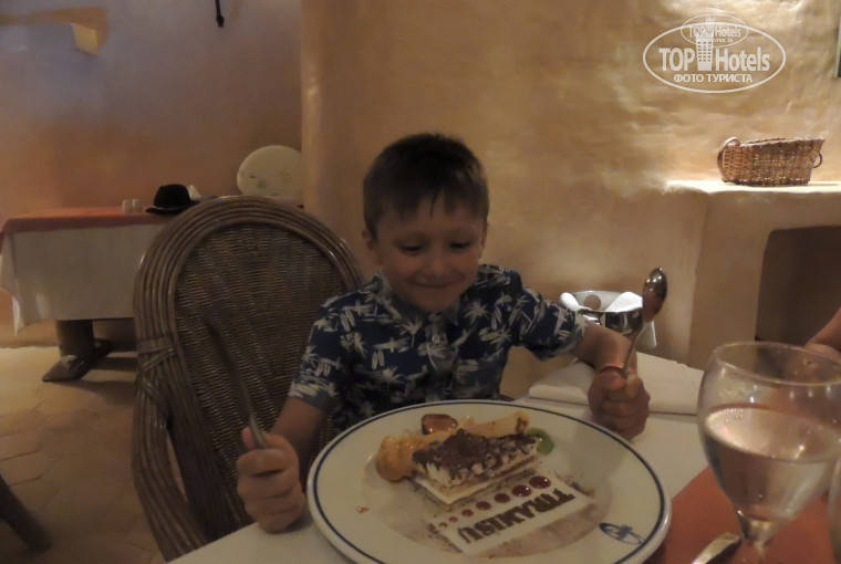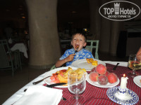 Мясо двух-трех видов, тунец на гриле, артишоки, тортики, пирожные, вкусное мороженное, фрукты чередовались ( три вида постоянно)сливы, дыня, персики, абрикосы, апельсины, нектарины. Понравилось вино розовое и белое. Но с 30 мая в отель стали приезжать в большом количестве туристы, мест в ресторане стало не хватать, и питание можно охарактеризовать как "голодными не останетесь":) Но неизменно были фрукты, вкусная выпечка, отменные разнообразные десерты. В последние четыре дня брала суп, очень понравился, всегда разные, на вид не очень, но вкусные!