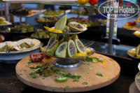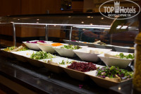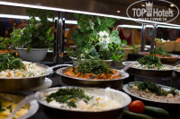 В двух словах: всё отлично. Очень много разных блюд, есть небольшая ротация на обед и ужин (чтобы не приедалось). Есть уголок для вегетарианцев и диетический. Мы очень оценили большое количество разнообразной зелени и гранатовый соус как заправку. Проходят дни национальных кухнь (индийская, турецкая, украинская). Сладости есть в большом количестве на обед/ужин, а ещё есть отдельная кондитерская, где можно попить кофе со сладостями. Есть 2 снек-бара для перекуса. Под конец мы стали обедать в том снеке, который на месте рыбного ресторана – там достаточно блюд, чтобы поесть.