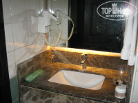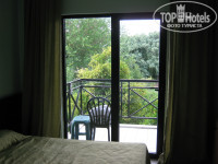 НОМЕР. Этот номер был в более- менее приличном состоянии: 2 кровати, 2 тумбочки, стол, зеркало, телевизор с несколькими российскими каналами, кондиционер, неработающий мини-бар (он мне не был нужен).На небольшом балконе 2 пластмассовых стула и табурет-столик. Бельевой шнур привезла с собой. В прихожей шкаф-купе с вешалками. В санузле ванна с гибким шлангом и новой шторкой, унитаз, умывальник, зеркало, фен. На умывальнике 2 мини-брусочка мыла без упаковки и 2 мини-флакончика шампуня без опознавательных знаков. Освещение в номере, как и во всем отеле, экономное. В санузле светит только из-за зеркала, в номере 2 тусклых бра, светильник в прихожей. В коридорах свет включается на движение, по территории стоят невысокие фонарики.