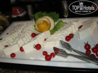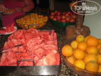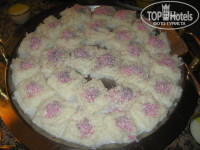 ПИТАНИЕ. Питание вполне устраивало. На завтрак были сухие завтраки, молоко, разные виды сиропов, мед, несколько видов сыров, творог, колбаса, помидоры, рисовая каша, вареные яйца, иногда жарили яичницу, омлет или пончики. Всегда была халва, очень вкусные бублики с кунжутом. Вкусный чай. Кофе из автомата. На обед и ужин всегда была курица (иногда индейка), недорогая рыба (один раз лосось), куриные потроха, редко говядина или баранина, тушеные с овощами. Большой выбор гарниров, тушеных, свежих и маринованных овощей, салатов, оливки, 1 вид супа.На обед и ужин было 5-7 видов сладостей и фрукты: арбузы, дыни, апельсины, грейпфруты, яблоки, иногда сливы и абрикосы. На полдник выносили несколько видов печенья, бисквит и другую выпечку. Все приготовлено вкусно, питанием были довольны все. Посуды хватало всегда, она чистая. В кулерах можно было круглосуточно набрать питьевую воду в свою тару или попить из одноразовых стаканчиков. Еду желающие могли нести в номер прямо с тарелками, остатки выносили на специальные столики в коридорах.Бар работал с 10 утра до 10 вечера. Там можно было взять чай, кофе, прохладительные напитки, соки. Из спиртного - водка, раки, джин, пиво. Белое и красное вино наливали сами из краников. Есть можно внутри ресторана и на улице под навесом. Официанты быстро убирали пустую посуду.