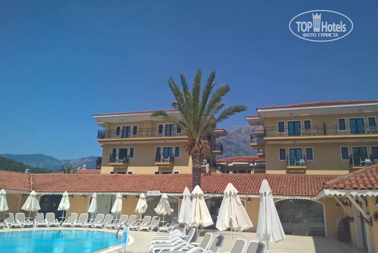По приезду в отель быстро поселили, но номер не понравился( первый этаж, шумно) и по просьбе без проблем переселили в другой. Территория достаточно большая, чистая, ухоженные клумбы. Большой пляж. Вход в море--галька, камни, так что лучше иметь специальную обувь или привыкать)). Но в Кемере так везде, едем туда из-за гор и воздуха.