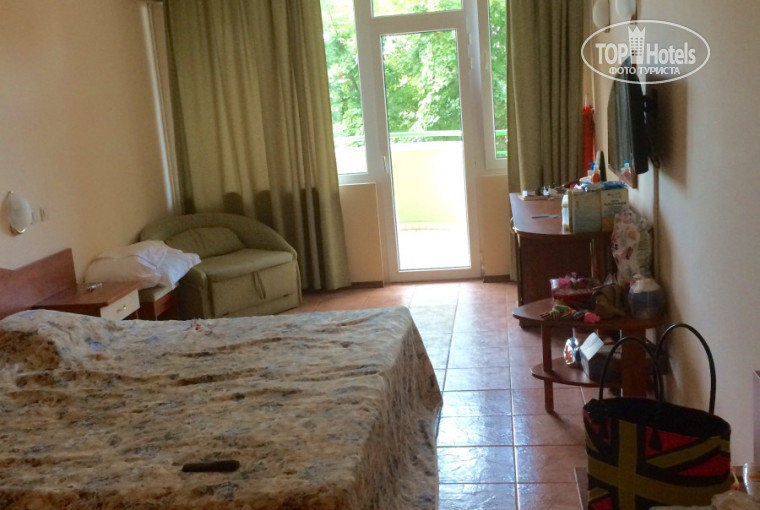 Что касается еды. Если вы отдыхали в Турции, Египте, отелях 4-5 звезд, то вас удивит ассортимент - очень маленький, просто крошечный. Но стоит отдать должное мясо, тушеные овощи, супы - очень вкусные. Фруктов мало: яблоки, сливы и арбуз. Сладкого мало и оно не очень вкусное. Вообще есть ощущение, что стараются на всем экономить. Вино приятное, пиво тоже нормальное, а вот соки-юппи - это кошмар! Нет чайных ложек на завтраке ( так как чай в столовой только на завтрак), вместо них пластиковые палочки. Сахар все насыпают из одной стеклянной банки. Ну если не придираться, то вцелом нормально.