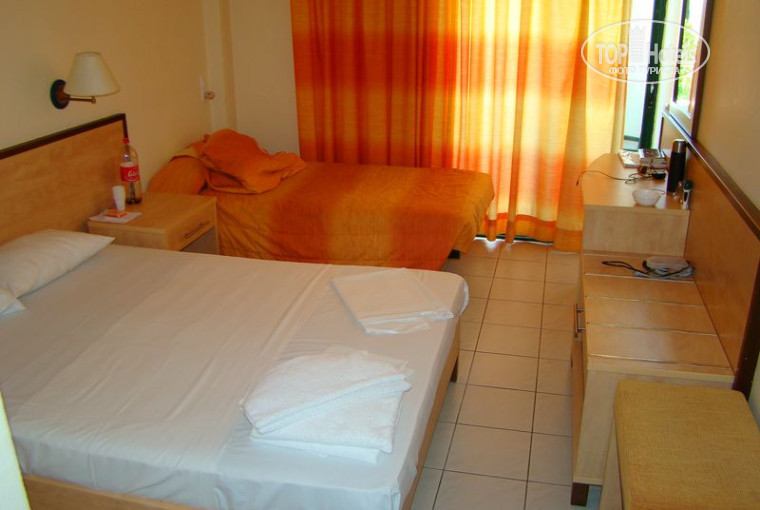небольшое здание в центре городка Херсониссос. В шаговой доступности множетсво магазинчиков с поддельными сумками и ремнями и прочим шмотьем (ремень 4евро, женская сумка 50евро, футболка от 8евро). КОНДИЦИОНЕР ПЛАТНЫЙ 7 ЕВРО/СУТКИ, иногда можно не платить)). Хорошие девушки на ресепшене, спасибо Оксане за помощь и советы. В округе ресторанчики на побережье, дискотеки. Ходили покурить кальян. Свой пляж отсутсвует. Близлежащие пляжи работают по следующей таксе: 2 евро лежак и 1 евро зонт (аренда за день), но пляж гравийно-галечный а при заходе в море скользкие камни, а ближе к вечеру ежи. Чтоб нормально поплавать надо валить прочь отсюда например в Star Beach или до другого городка Сталида или Мали - там в 100 раз лучше! Старбич конечно грязноват и много европейских малолеток (до 17 лет), но выбирать по близост не из чего. Свой бессейн к сожалению очень хлористый.