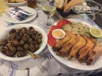 Питание. В столовой очереди - это правда. Но мы приноровились приходить не в начале, и не в конце отведенного для еды времени, и в очередях практически не стояли. Тарелок, чашек бывает, что не хватает, но их быстро приносят. Еды хватает всегда, как только что-то начинает заканчиваться, сразу же приносят новый лоток с едой. Тарелки попадаются недомытые, но всегда можно найти чистую. Ассортимент: завтрак: рисовый пудинг, круасаны, пончики, фри, фасоль, омлет, запеченные перцы, сосиски, 1 вид ветчины, фета, свежие овощи, хлопья, джем, мед. На обед и ужин всегда было на выбор 2 мясных блюда: курица, баранина, кролик, свинина, котлетки, фрикадельки, какая-то колбаса из индейки, рыба была, на гарнир тушеные овощи, фри, макароны, пюрешечка пару раз, или тушеная картошка, все для греческого салата, на десерт мусс, желе, какой-нибудь бисквит, из фруктов - апельсины (много) и виноград (много), короче, когда-то было вкусно, когда-то не очень, но голодными точно остаться невозможно. По алкоголю в баре: вино белое и красное (на мой вкус разбавленное), пиво (такое же), узо и раки. Олл-инклюзивный алкоголь честно перепробовали весь, не понравился, покупали спиртное в магазинах. Около отеля есть 2 магазина, плюс магазины в поселке, купить есть где)) Мы себя не особо запаривали питанием в отеле - машину брали, по острову путешествовали, соответственно ели там, где настигал голод)) в поселке облюбовали таверну Сиртаки, ходили в нее частенько на ужин, ели морепродукты.