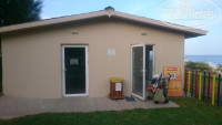 -ПЛЯЖ:. пляж муниципальный в 5 минутах ходьбы по проезжей части узкой дороги, имеющей уклон и поворот, где выезжают автобусы турфирм, машины постояльцев. Пешеходной отдельной дороги нет, со стороны обрыва также не огорожена. Когда едет автобус приходится вплотную прижиматься к самому краю, а с ребенком вообще страшно. Сам берег мелкая и средняя галька, но при входе в море она плотная, утоптанная, ощущение как будто идешь по приклеенным ко дну камешкам (я люблю гальку, но по этой заходить в море было больно и за весь отдых ноги не привыкли). Душ на пляже есть. Туалет есть, но все проржавевшее. В период нашего пребывания почти всем русским в качестве компенсации за овербукинг выдали голубые браслеты, как итальянцам, для пользования муниципальным пляжем бесплатно.