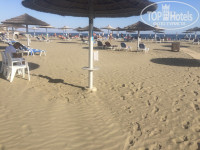 Пляж - песок, очень долгий песчаный вход ( рай для детей), вода чистейшая и теплая даже в сентябре.