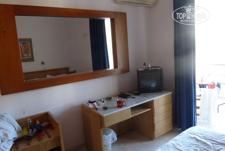 Прежде чем заехать, уточнила на сайте в разделе "вопросы по отелю" в какой заселят номер. Оказалось что в неотремонтированный стандарт, поэтому иллюзий по отелю не питала. Номер в самом деле оказался никудышный - разнокалиберная мебель, беленые стены и потолок, отсутствие розеток (всего три, в один из которых телевизор, в другой холодильник),, нет полок в шкафу - все приходилось разложить в ящики столов и тумб, маленький санузел со шторкой и вечно мокрым полом со стоящей водой по углам, кафельный пол, старый телевизор, почти не показывающий 1-й канал. Самое неудобное - отсутствие комфортного освещения - три тусклых бра над головой, один из которых не работает, и не подлежит ремонту (обращались на ресепшн). Приходилось вечером блуждать по номеру в потемках. Но это ничего, потому, что приходили только спать. Присутствовали и комары пару ночей (включали фумигатор) и запах канализации иногда - ненавязчивый. Кровати удобные, матрасы и подушки мягкие - спали все без задних ног.