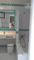 В ванной комнате унитаз, сама ванна, раковина. Лежит мыло, полотенца в кол-ве 3 шт: большое, поменьше и для ног. Есть работающий кондиционер-включали редко, т.к температура в номере для нас была комфортной.