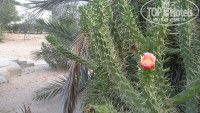 Территория. Огромная. Зеленая. В стиле Тунисской деревни. Домики в основной массе одноэтажные. Пальмы- с финиками на них, кактусы, цветущие деревья и кусты - красиво, экзотично - Африка одним словом.