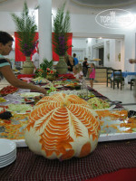 Питание. Завтрак с 6 утра. Все включено с 10 до 23. Возможно, мы приехали уже не в сезон -с 7 по 15 октября, толп народа не наблюдали. В ресторане очередей больше 5-10 человек не было, и то за тем, что прямо при нас готовили на гриле. Свободные столики были всегда, приходилось подождать минуту-две, пока официант уберет грязную посуду и принесет чистые приборы. Тех, кто давал чаевые, уже ждали накрытые столы-бронь. Официанты их ревностно оберегали от посягательств других отдыхающих.