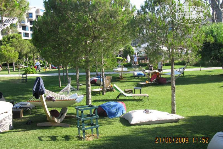 Отель расположен в пяти минутах езды от Белека, в 40 минутах езды от аэропорта. На территории есть торговый ряд на улице и бутики внутри здания. Цены разные. В среднем выше, чем в Белеке, но можно торговаться. Отдел ТАС(текстиль) по ценам не отличается от Белека.